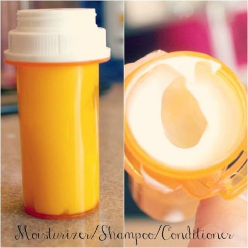 Bạn có thể dùng các lọ thuốc rỗng đựng các loại kem dưỡng ẩm, dầu gội hay sữa rửa mặt mà không sợ chúng tràn ra ngoài.