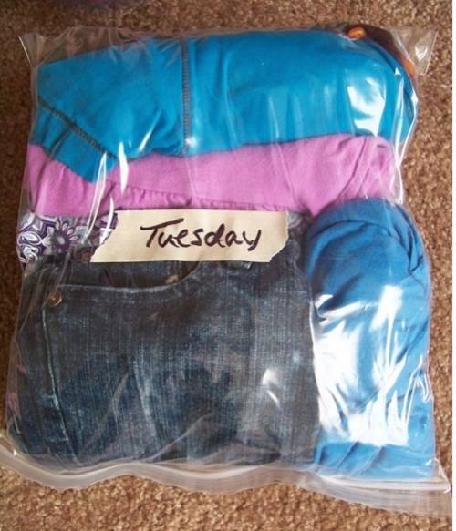 Hãy bọc riêng các loại quần áo bạn chuyên phối hợp với nhau để tiện khi sử dụng. Những chiếc túi này cũng rất tiện lợi bởi bạn có thể để riêng quần áo bẩn chưa kịp giặt vào đó