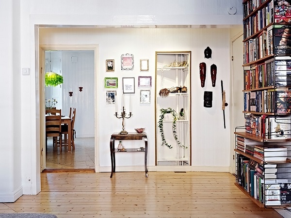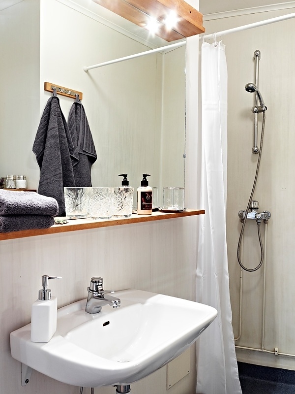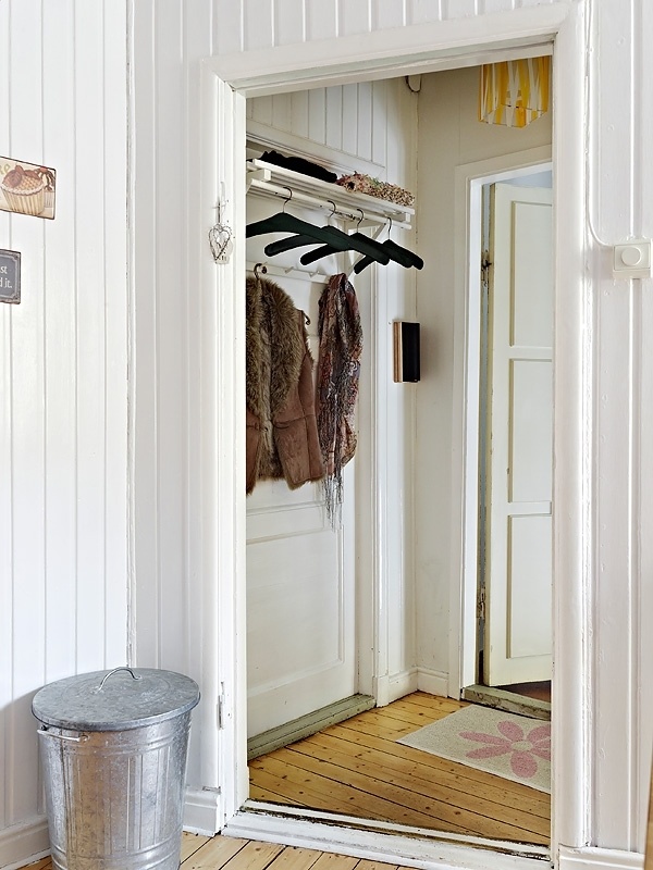 Tận dụng ngay bức tường nhỏ bên cạnh để thiết kế móc và kệ treo tiện lợi.