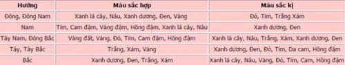 Đối với cửa chính, màu sắc sẽ phụ thuộc vào hướng. Ví dụ nhà ở hướng Đông, Đông Nam cửa nên sơn màu xanh lá cây, nâu, xanh dương, đen, vàng, kị màu đỏ, tím, trắng xám... Bạn có thể tham khảo bảng màu sơn cửa chính phù hợp theo hướng nhà ở trên.