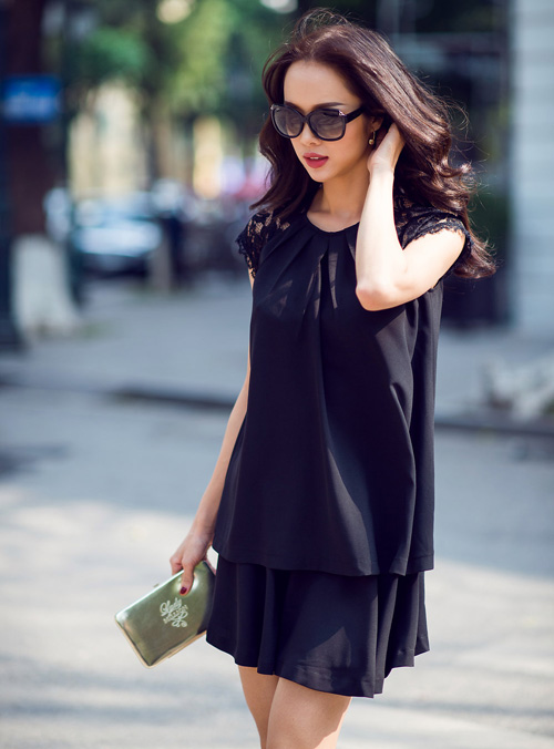 Đầm đen hai tầng điệu đà và duyên dáng
