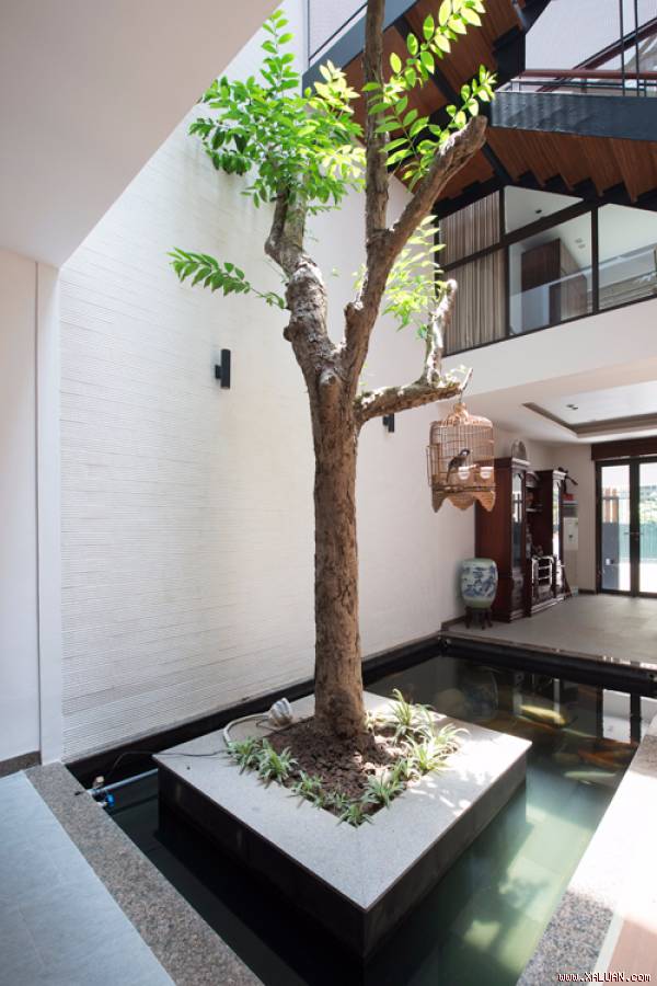 Các KTS Chử Ngọc Anh, Lê Cảnh Văn, Đặng Huy Cường (iHouse Architecture & Construction) dành nhiều thời gian nghiên cứu cho phần lõi giữa nhà. Khu sân vườn, hồ cá được bố trí ở khu vực này giữ chân các thành viên ngồi lại lâu hơn, thư giãn, tận hưởng không khí trong lành.